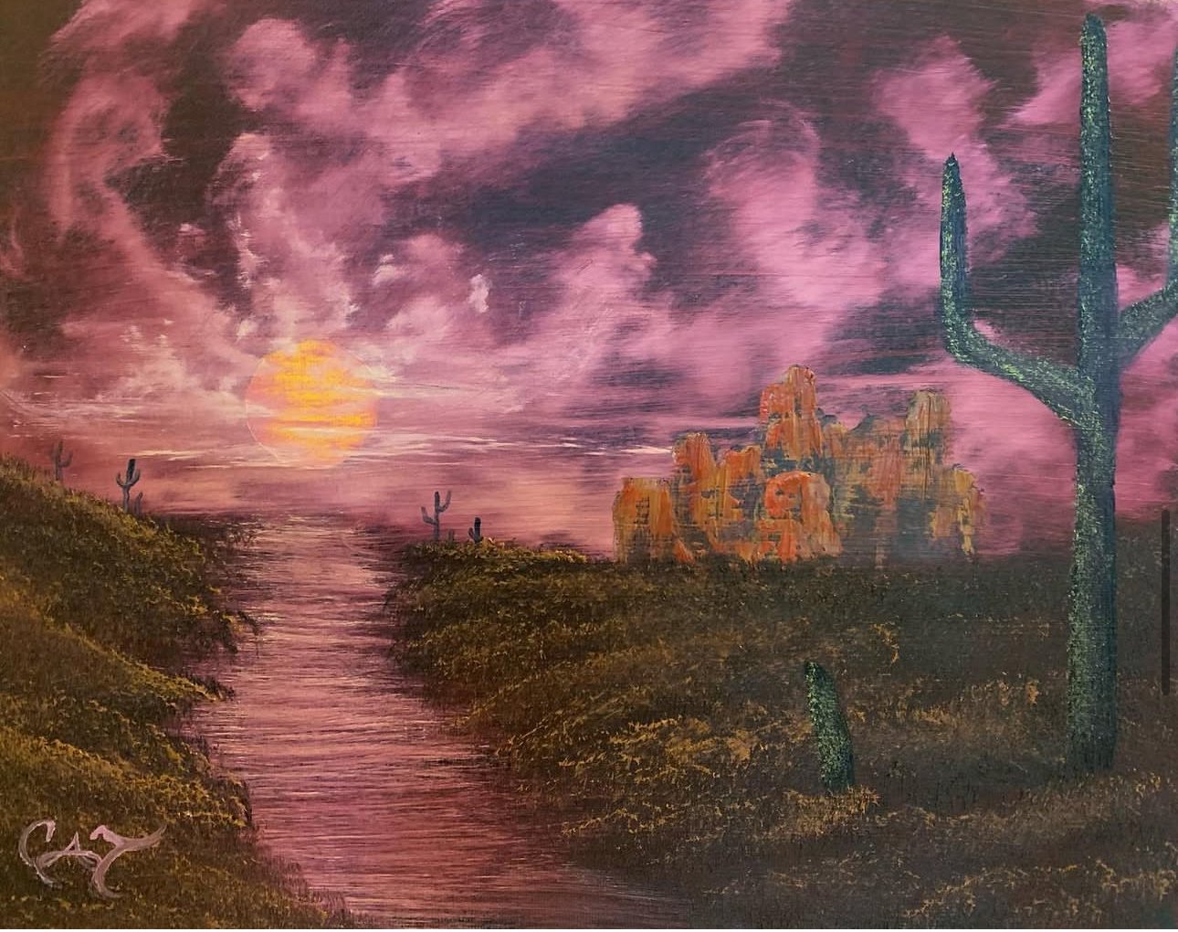 This is a one day oil painting class, using a Wet on Wet painting technique. You will complete your very own painting with step by step instruction during this class. Please bring an apron or something to wear over your clothes- or wear something you don’t mind getting paint on. Please bring a bag lunch and a beverage. We will take a short lunch break. Water and a light snack will be available.